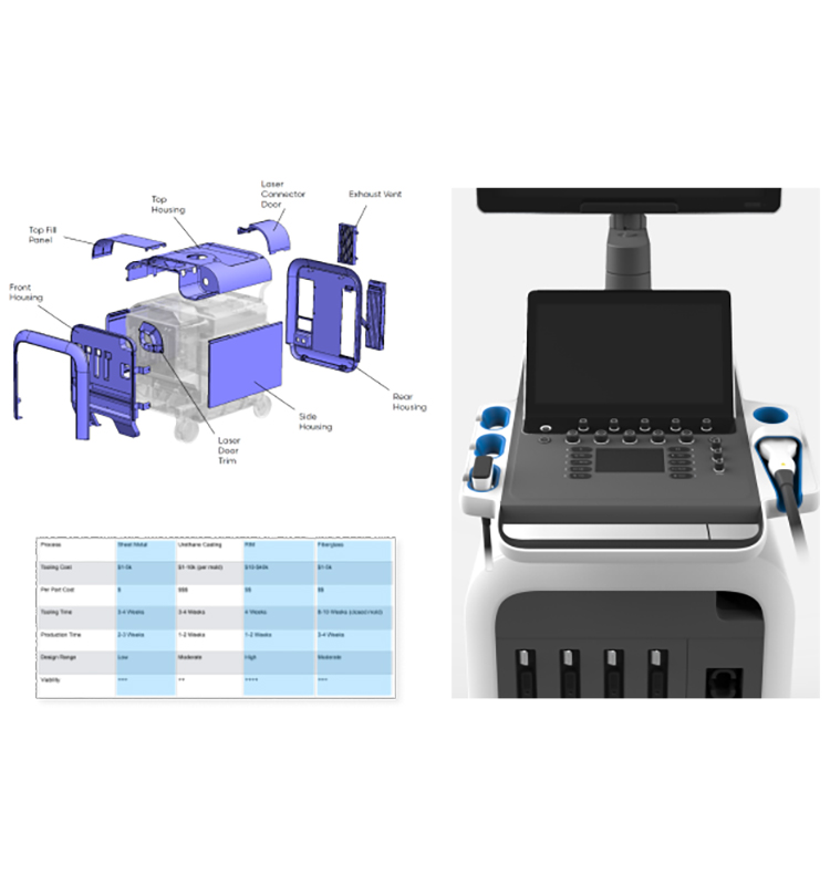 To help Seno Medical to determine critical features of the device functionality, we worked with Seno Medical from the earliest stages of industrial design concept generation, defining volumetrics, end-user interaction, and mechanical engineering architecture.
